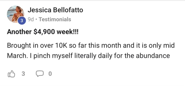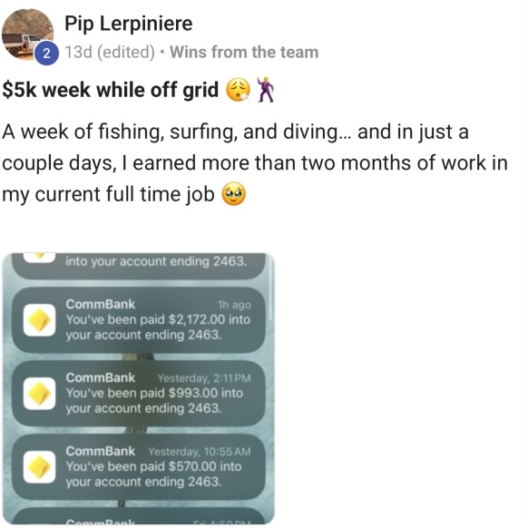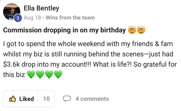 It just keeps getting better and it's just the tip of the iceberg because there's just no end, there's no cap, there's no ceiling here so I can just keep going and growing and supporting other people to become healthy and wealthy which is really deeply fulfilling for me. I’m so so grateful to myself for getting out of my head and my limiting thoughts and beliefs that were holding me back. The inner work really combined with the strategy I’ve learned here has changed everything in my life for the better.